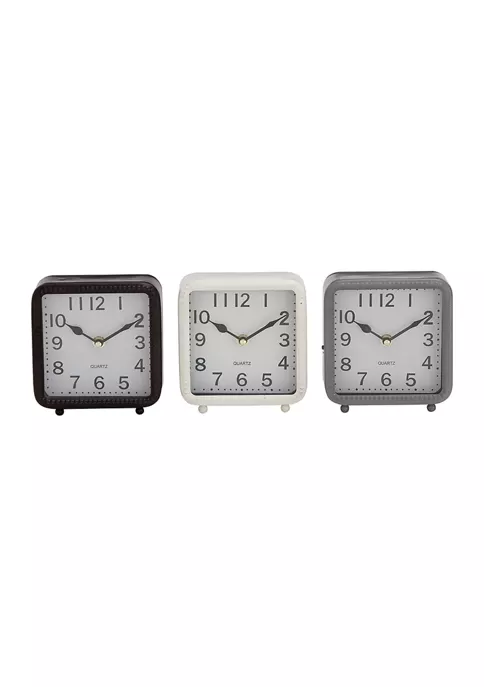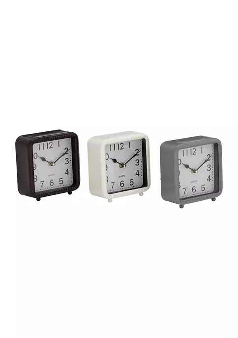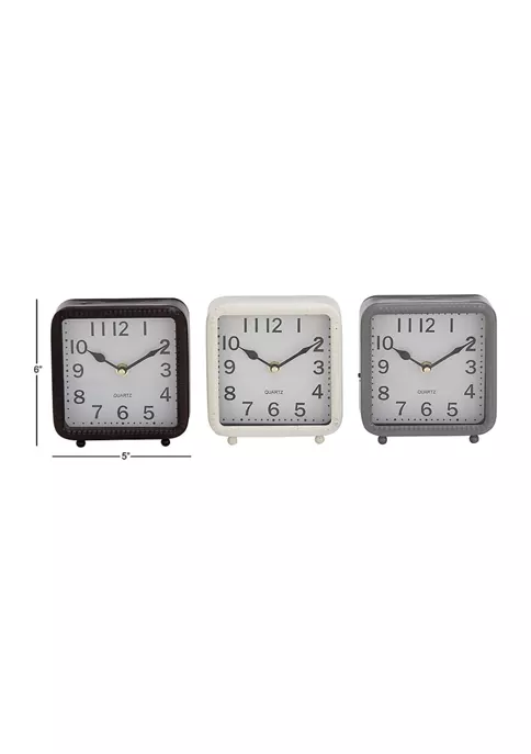 A classic and timeless style of design for your traditional home setting. Crafted with iron and glass for a solid and durable form. Soft sheen, white, black, and gray finish highlight each of these table clocks. Muted colors and soft sheen finish with orb leg stands flaunt the traditional style of these table clocks for chic and classic display items. Each item measures 5″L X 2″W 6″H and weighs under 1 lb