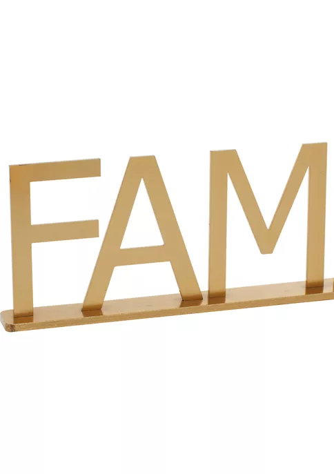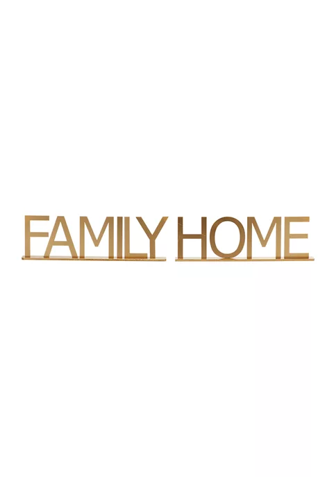Features an eclectic style inspired design. This 2-piece set of metal signs are made from polished metal for a durable décor experience. These luxurious pieces come in a glossy gold finish for an extra bang for the buck. These unique metal signs boast a discrete base holding the words “FAMILY” and “HOME” for a truly warm and cozy eclectic living space. Each item measures 10″L x 1″W x 3″H, 10″L x 1″W x 3″H and weighs 1 lb.