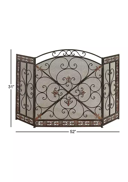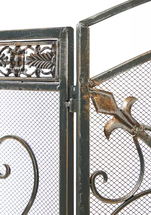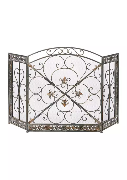 This traditional style black metal fire screen will reinvent the beauty of your fire place by adding a stylish screen which both protects you and the fire. Keep those straw ambers at bay with this fire place screen. Adding style even when the fire isn’t lit, this fireplace screen adds style as well as function. Designed with protective stoppers at the base that prevent scratching furniture and table tops, as well as sliding around. This item comes shipped in one carton. Features fleur de lies and floral sculptures. Suitable for indoor use only. Item features a 3 screen panel. Traditional theme Features fleur de lis and floral sculptures. This fireplace screen features paint that can resist heat up to 600 degrees. Please note that this item are for decorative purpose use only.