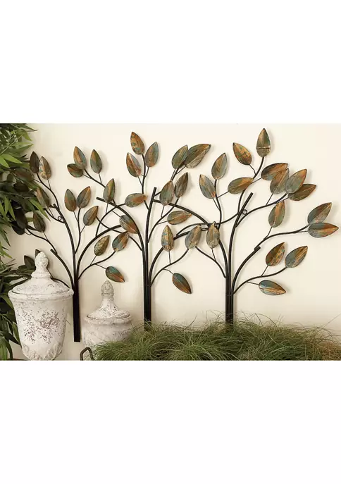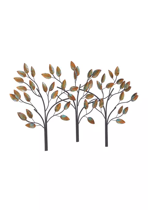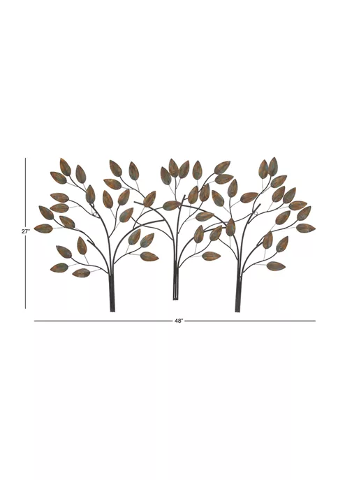 Updated Traditional Brown Hue Metal Three Trees in a Row Wall Sculpture, Wrought Iron Branches and Trunks.