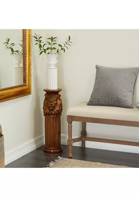 A classic and timeless style of design for your traditional home setting. A traditional bronze pedestal table crafted of sturdy and high quality polystone. A lion pedestal table that comes in a bronze finish that complements any furniture and accent piece. This stunning pedestal table features a lion-inspired design with detailed facial features along with round top and body with corrugated pattern. This item measures 8″L x 9″W x 25″H and weighs 10 lbs