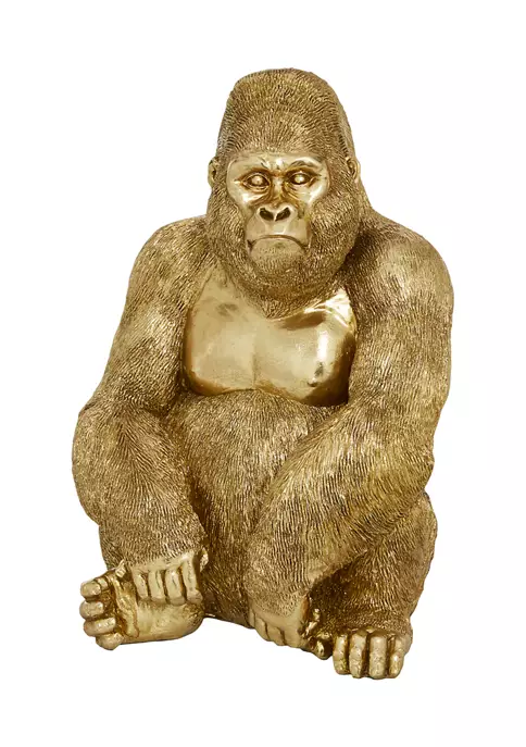 Crafted in a contemporary style that fits great in most homesItem is made of a solid polystone material for its durable and sturdy structureShiny gold exterior defies the addition of realistic ridges, giving this figurine an animated touchThis sculpture highlights a seated gorilla with detailed primate featuresIt measures 11″L x 9″W x 15″H and weighs 6 lbs