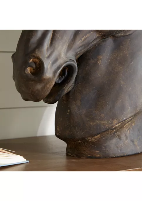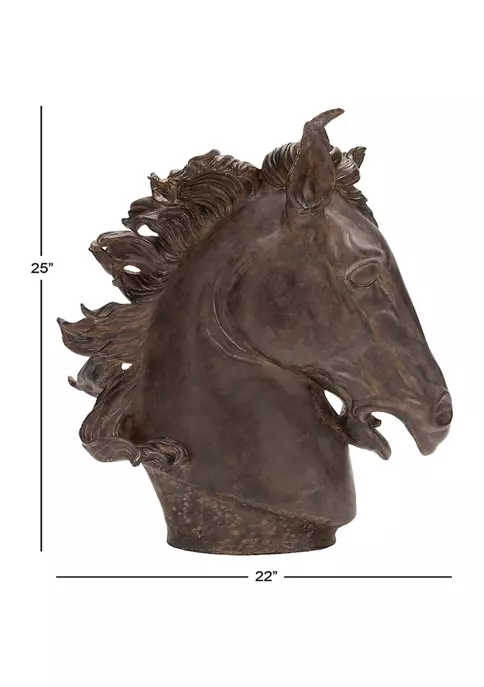 A traditional inspired designed for classic harmony full of friendly charmThis detailed sculpture is made from polystone materialsThis sculpture comes in a warm dark brown hue for a realistic vibeThis highly detailed sculpture features a realistic horse head with a flowing mane and open mouthThis item measures 22″L x 7″W x 25″H and weighs 12.79 lbs