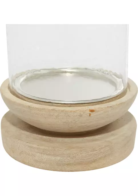 A traditional inspired designed for classic harmony full of friendly charmMade of a solid wood for durabilityFeatures candle holder with a classic cream finishingThis candle holder has a tall cylindrical hurricane glass with a round bottomMeasurements: 5.6”L x 5.65”W x 9.9”H; weight: 2.14 lbs