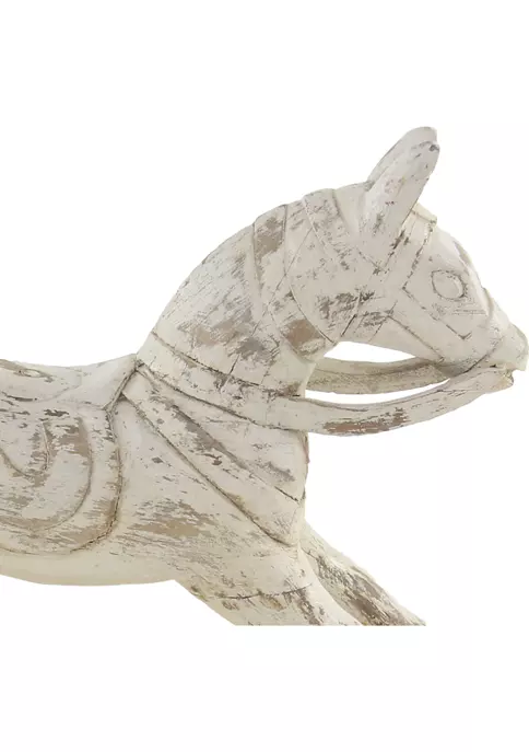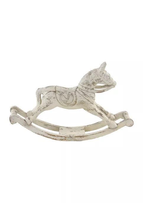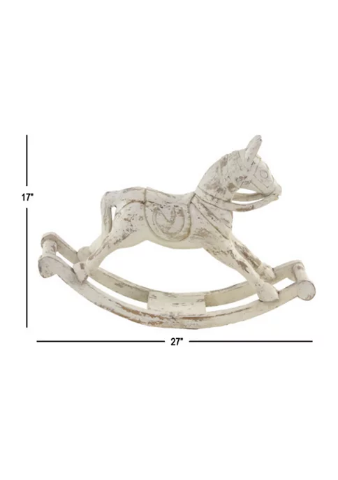 The vintage design of this home dΓ©cor brings a sense of the past to your homeThis is a craft made from solid mango tree woodThis rocking horse sculpture has a distressed white finish with light detailingRealistic details and a shabby chic look give this miniature rocking horse a vintage feelThis item measures 27″L x 7″W x 17″H and weighs 3.45 lbs