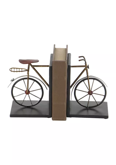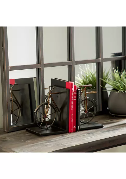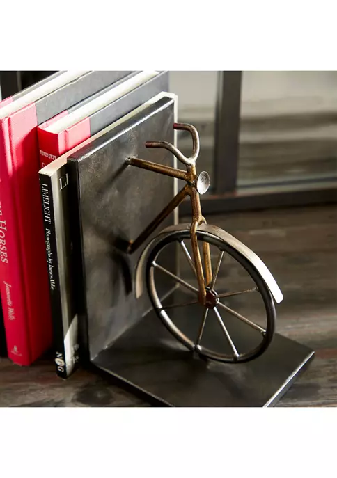 Vintage inspired designs draw inspiration from the past to create a warm and inviting space that is full of personality. Bookends with bicycle sculptures made of metal for a durable structure. Bicycle bookends highlighting black and brass finishes suitable for vintage style. Smooth sides and 90-degree angles secure books in place. Set of vintage bookends measures 6″L x 5″W x 8.5″H each and collectively weighs 3.5 lbs