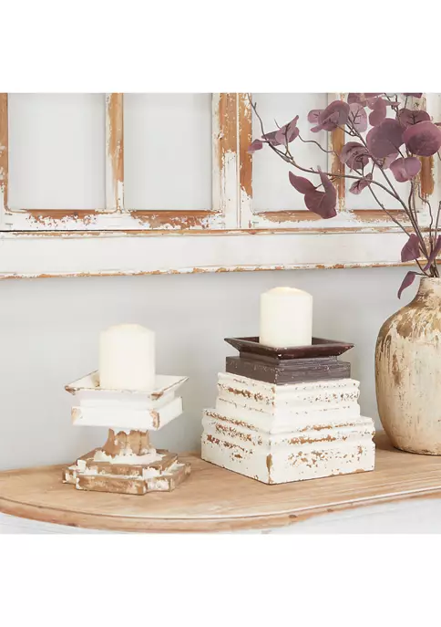 Hot Sale 💯 Traditional Mango Wood Candle Holder – Set of 3 by Monroe Lane 🛒