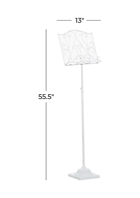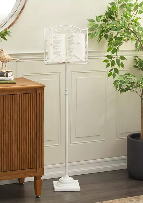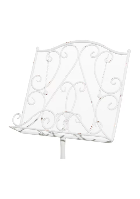 Designed with a farmhouse style for that homey feeling, this floor easel from Monroe Lane features a reliable construction or iron and carries scrollwork with a distressed white paint.