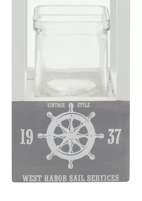 Candle holder lanterns measure 15 in x 4 in x 4 in, 11 in x 3 in x 3 in, and weighs 1.36 lb